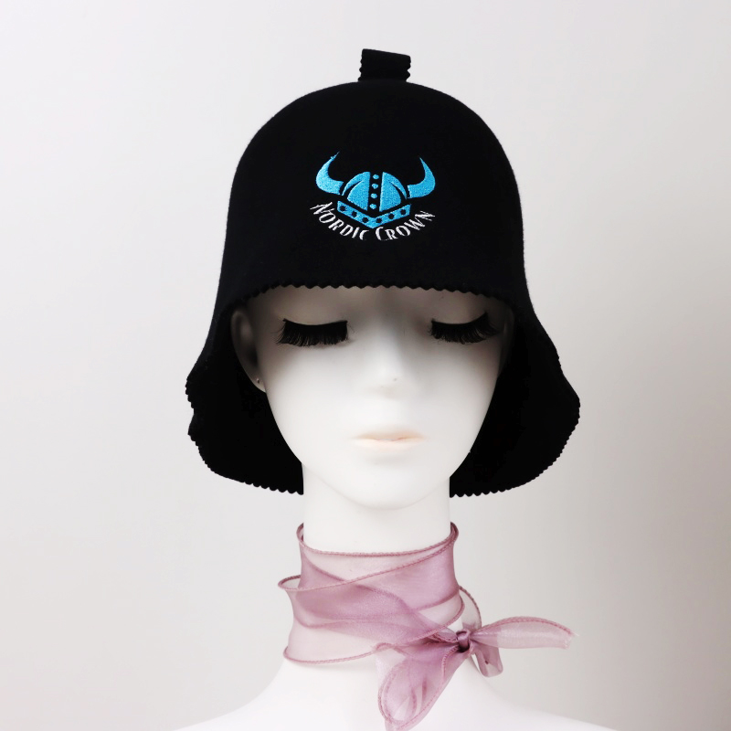 A:The air in the sauna room may be up to 90 degrees, but a wool felt hat will keep the air around your head at a comfortable temperature.Q:Can you do my own style and embroidery?