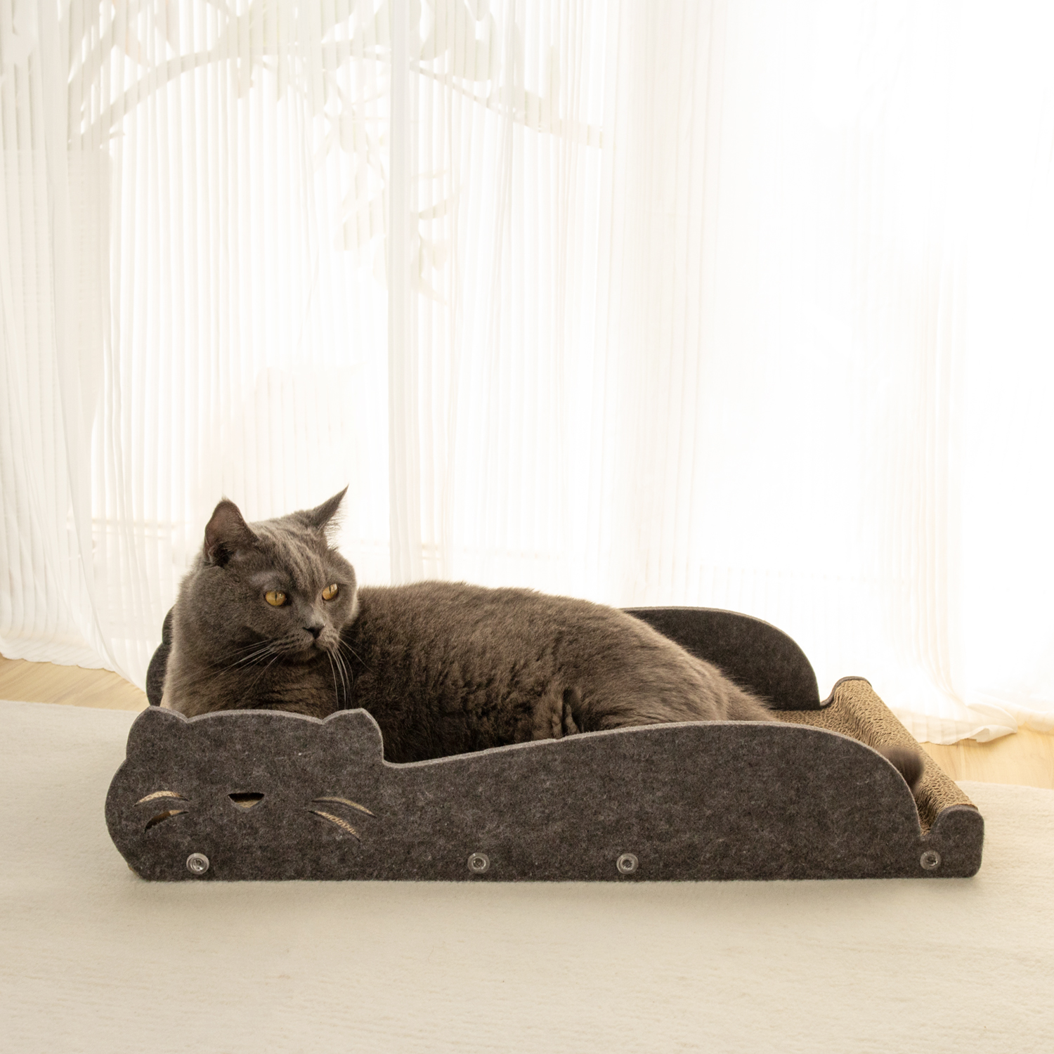 A14: Yes. The acoustic panel material is scratch-resistant. Additionally, the soft edges and enclosed design are naturally appealing to cats, encouraging them to enter and settle in the bed.