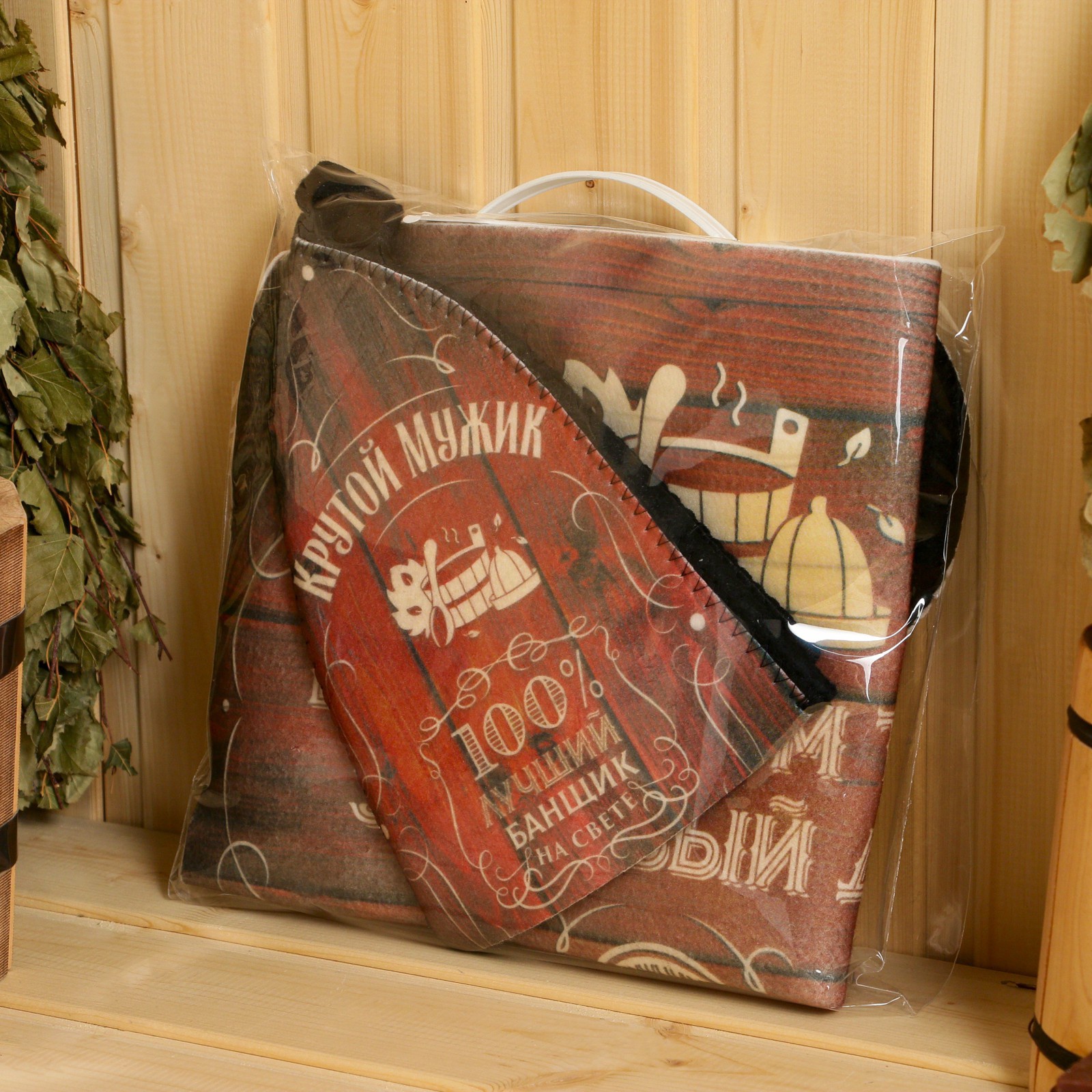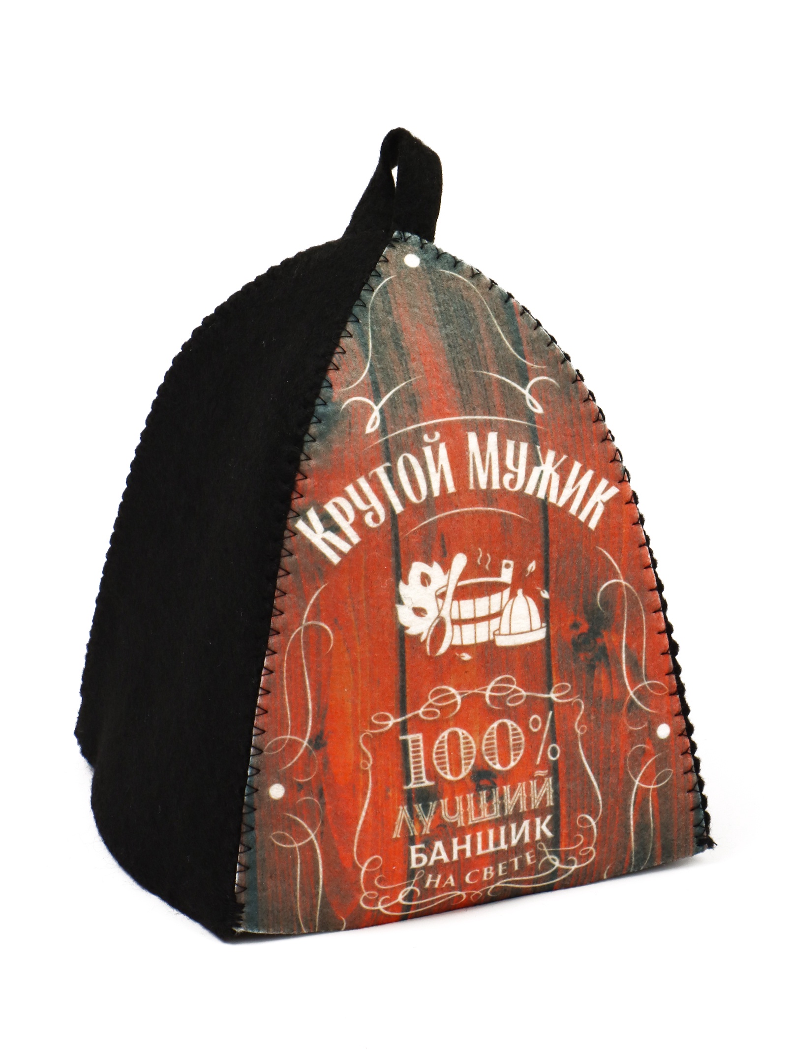 Bath Set with Cool Guy Print 4-Piece Hat Sauna Glove Slippers Mat Wool Dark Eco-Friendly Quick Dry Unisex