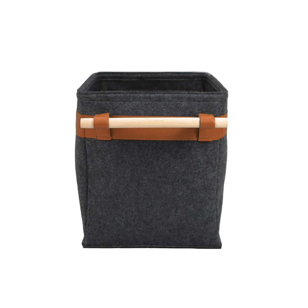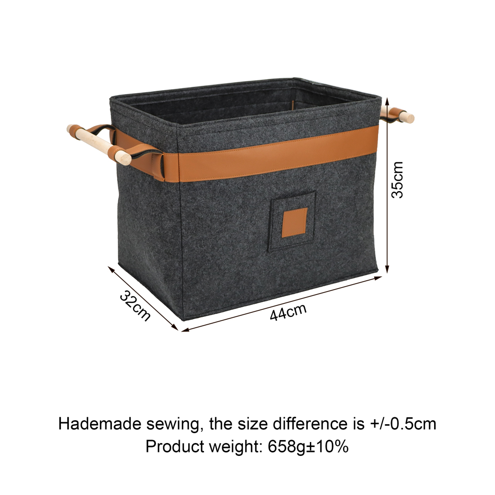 Customized Grey with Wood Handles Home PU Edge Storage Basket Foldable Felt Storage Basket