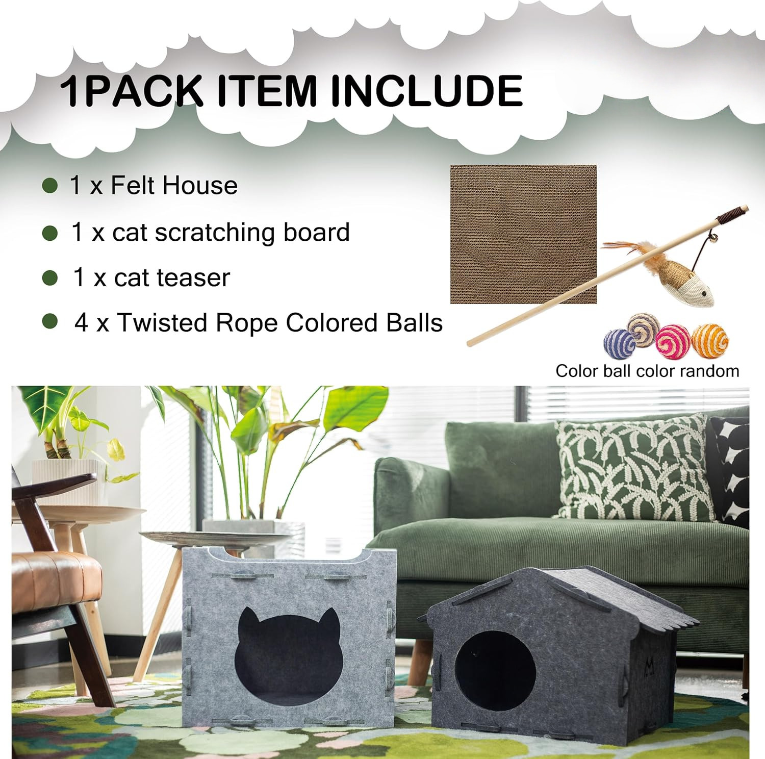 This acoustic felt cat cave (acoustic panel cat bed) is made of high-quality felt that’s soft, warm, and durable. The enclosed cat cave design provides a safe haven for indoor cats, while the acoustic panel feature absorbs ambient noise—eco-friendly and popular for pet supplies.