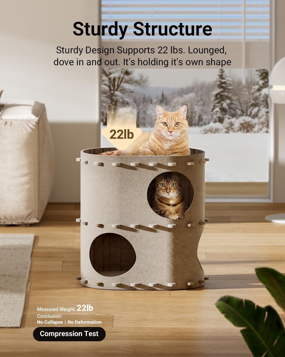 Durable acoustic panel cat bed: Made of thick acoustic felt, this cat cave house is resistant to scratching and wear. It’s warm, cozy, and sound-absorbing, perfect for indoor cats and small dogs. Eco-friendly material ensures the safety of your beloved pets.