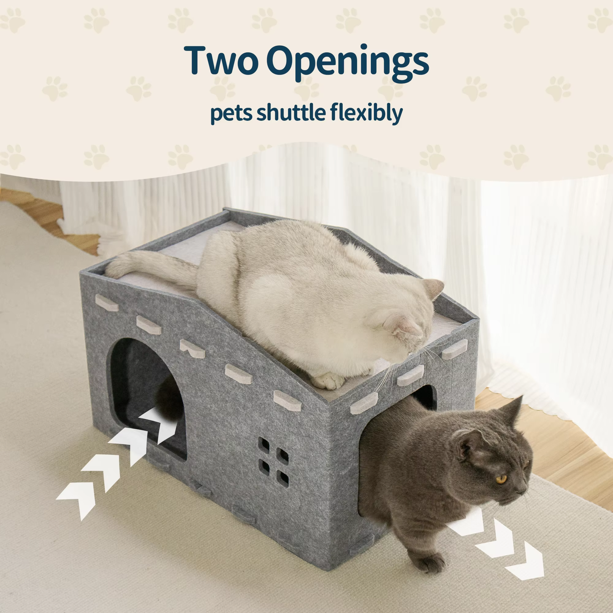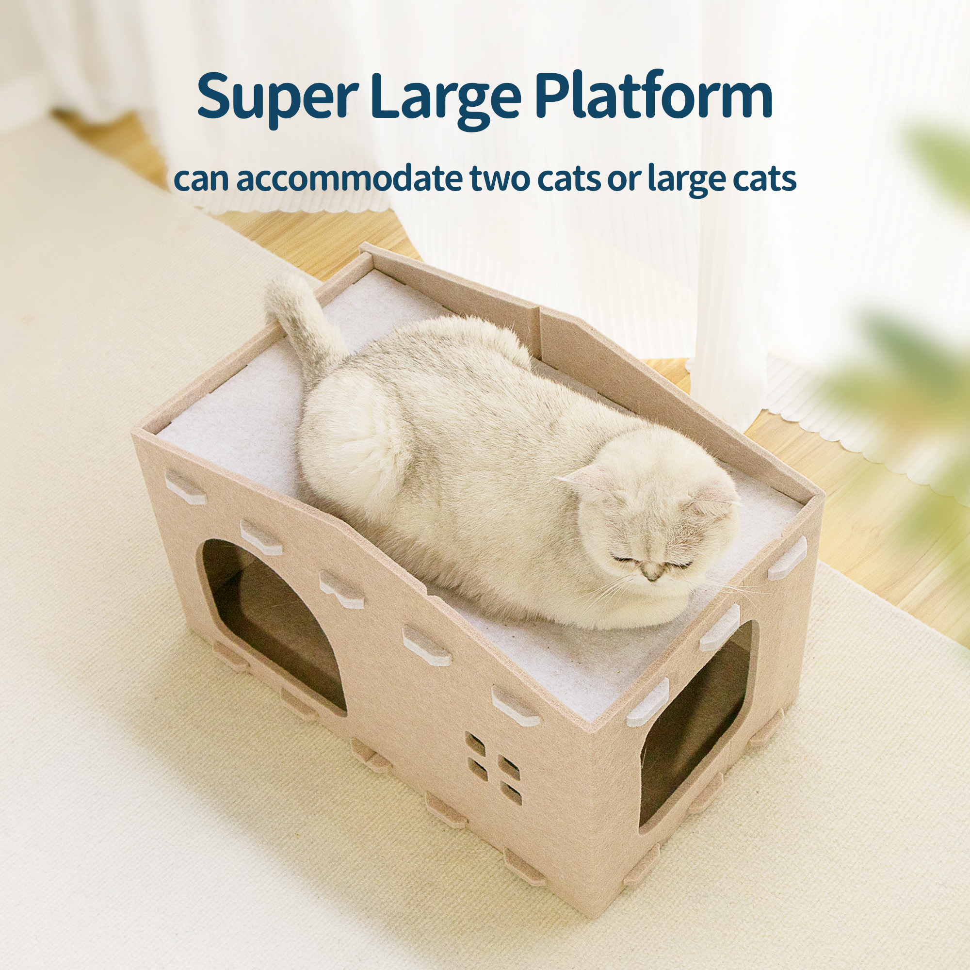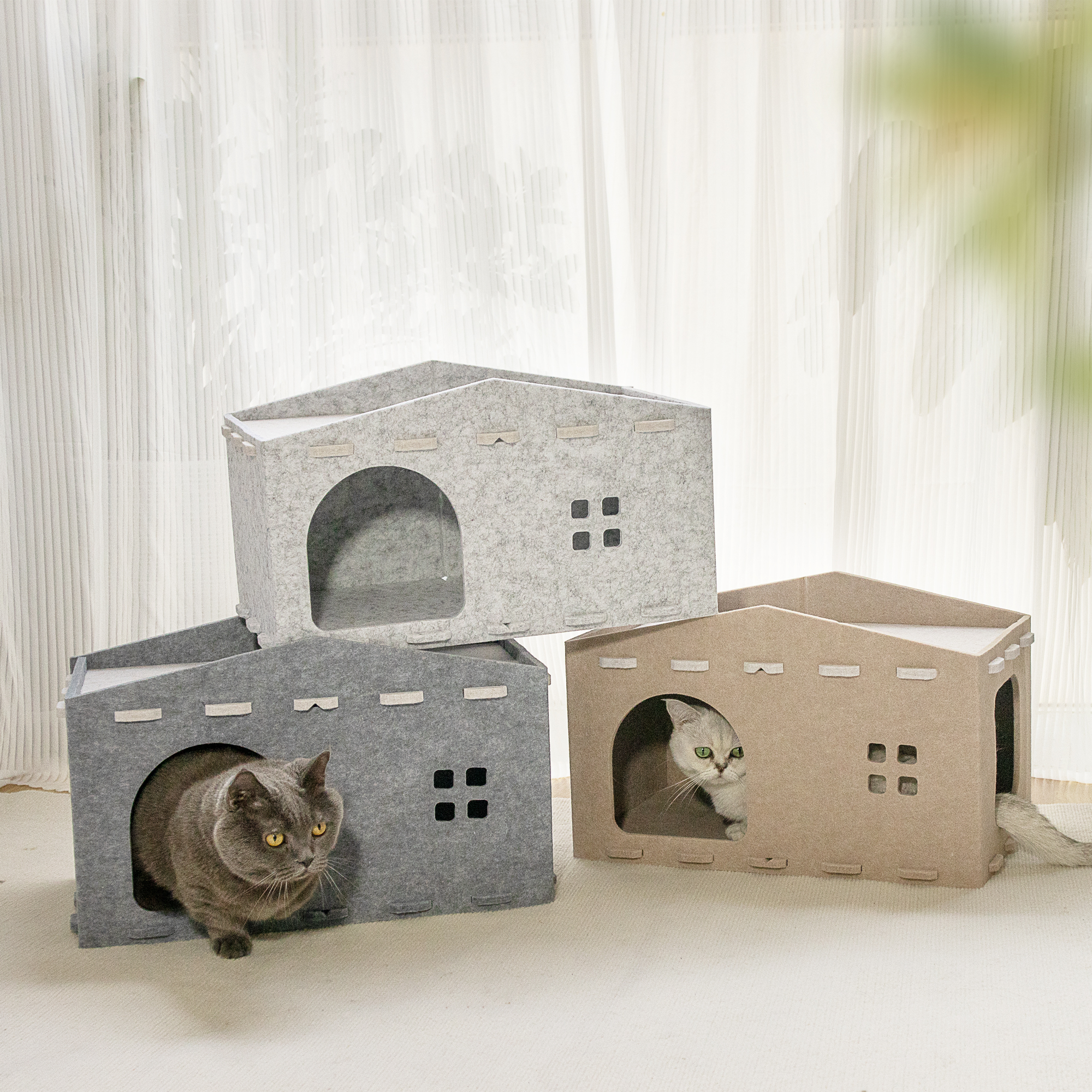 Eco-friendly acoustic panel cat cave: This felt cat bed house is made of recycled acoustic felt, featuring excellent sound absorption and durability. It’s warm, cozy, and designed with a pet-friendly cave shape, suitable for indoor cats and small dogs to relax.