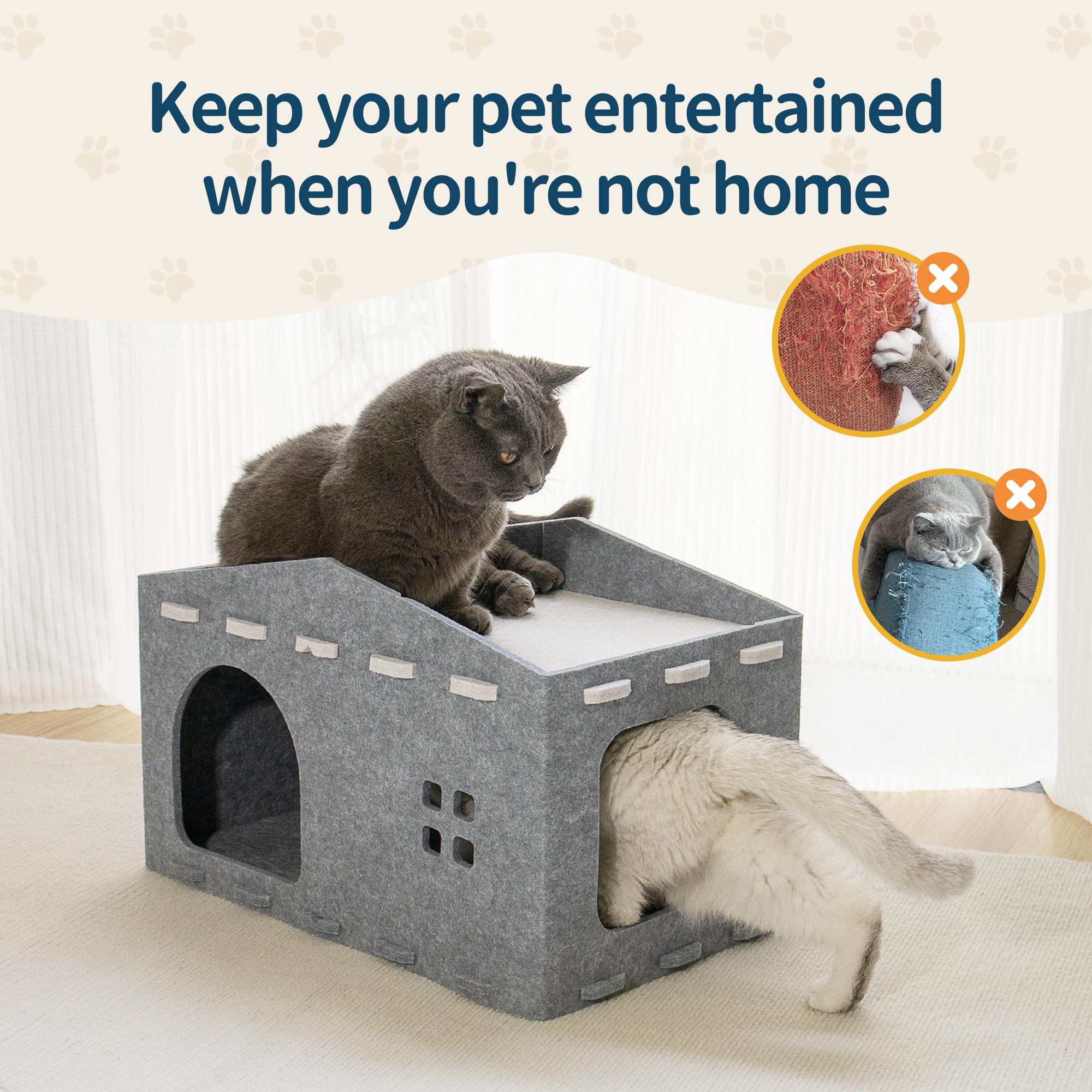 A14: Yes. The acoustic panel material is scratch-resistant. Additionally, the soft edges and enclosed design are naturally appealing to cats, encouraging them to enter and settle in the bed.