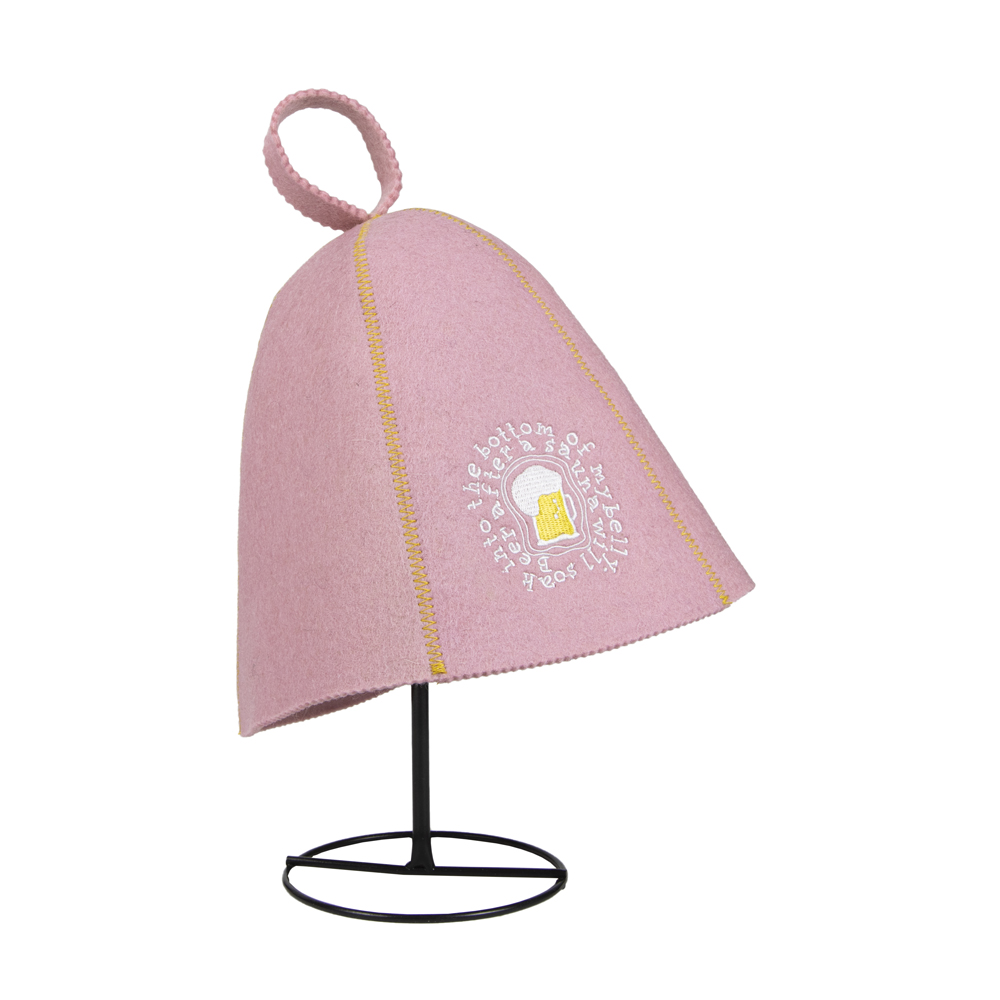 A:The air in the sauna room may be up to 90 degrees, but a wool felt hat will keep the air around your head at a comfortable temperature.Q:Can you do my own style and embroidery?