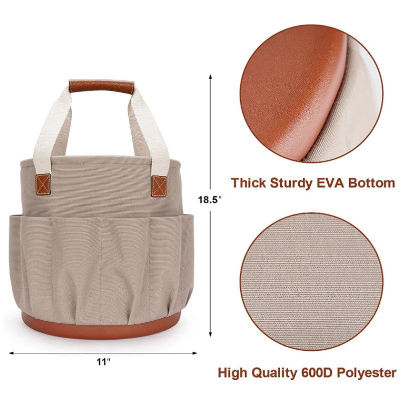 Garden tote is made of high quality fabric, which is waterproof, strong,durable and reusable.