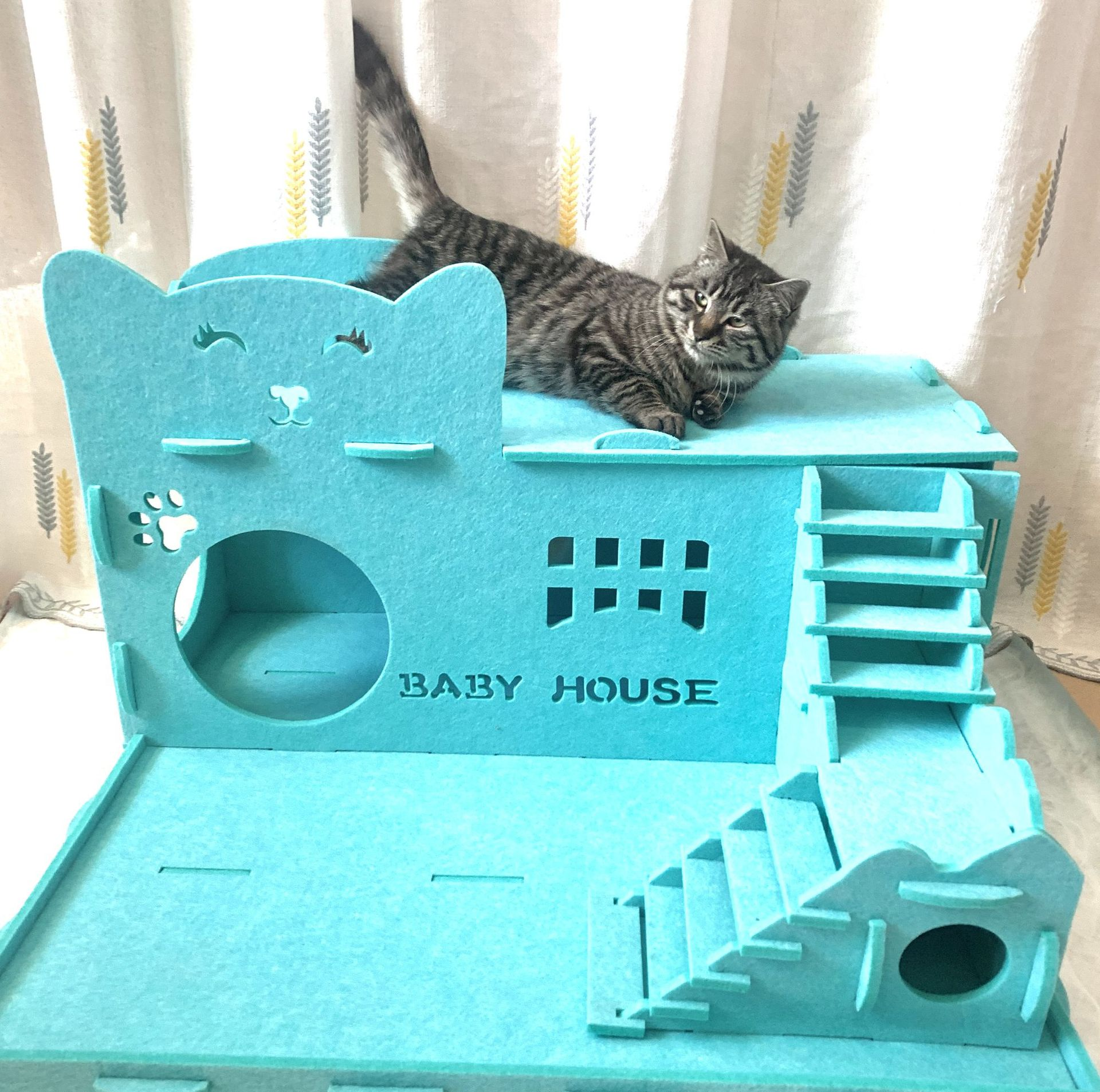 Made of high-quality acoustic felt, our cat cave bed offers a quiet, warm resting space for indoor cats. The acoustic panel feature reduces ambient noise, and the durable structure ensures long-term use—eco-friendly, cute, and perfect for adding to pet accessories collections.