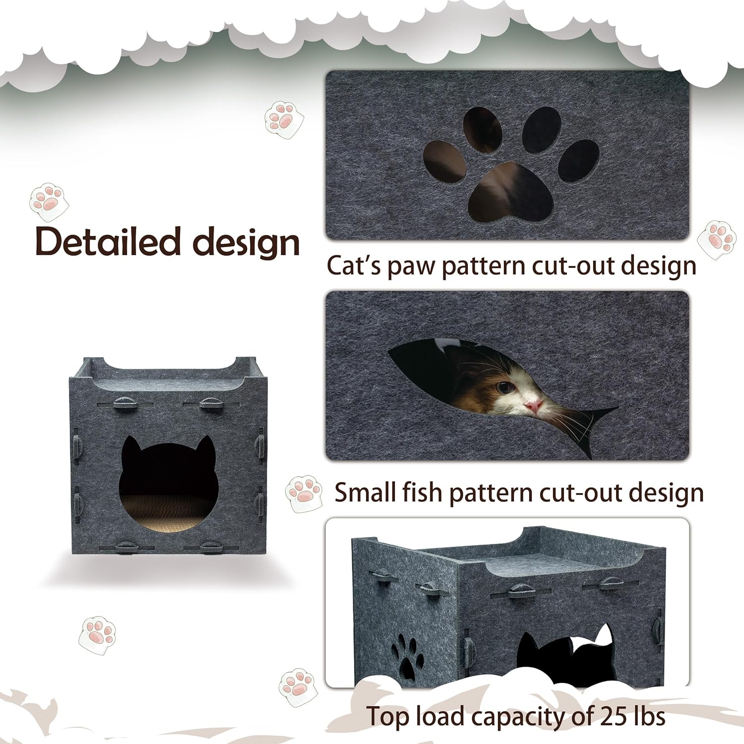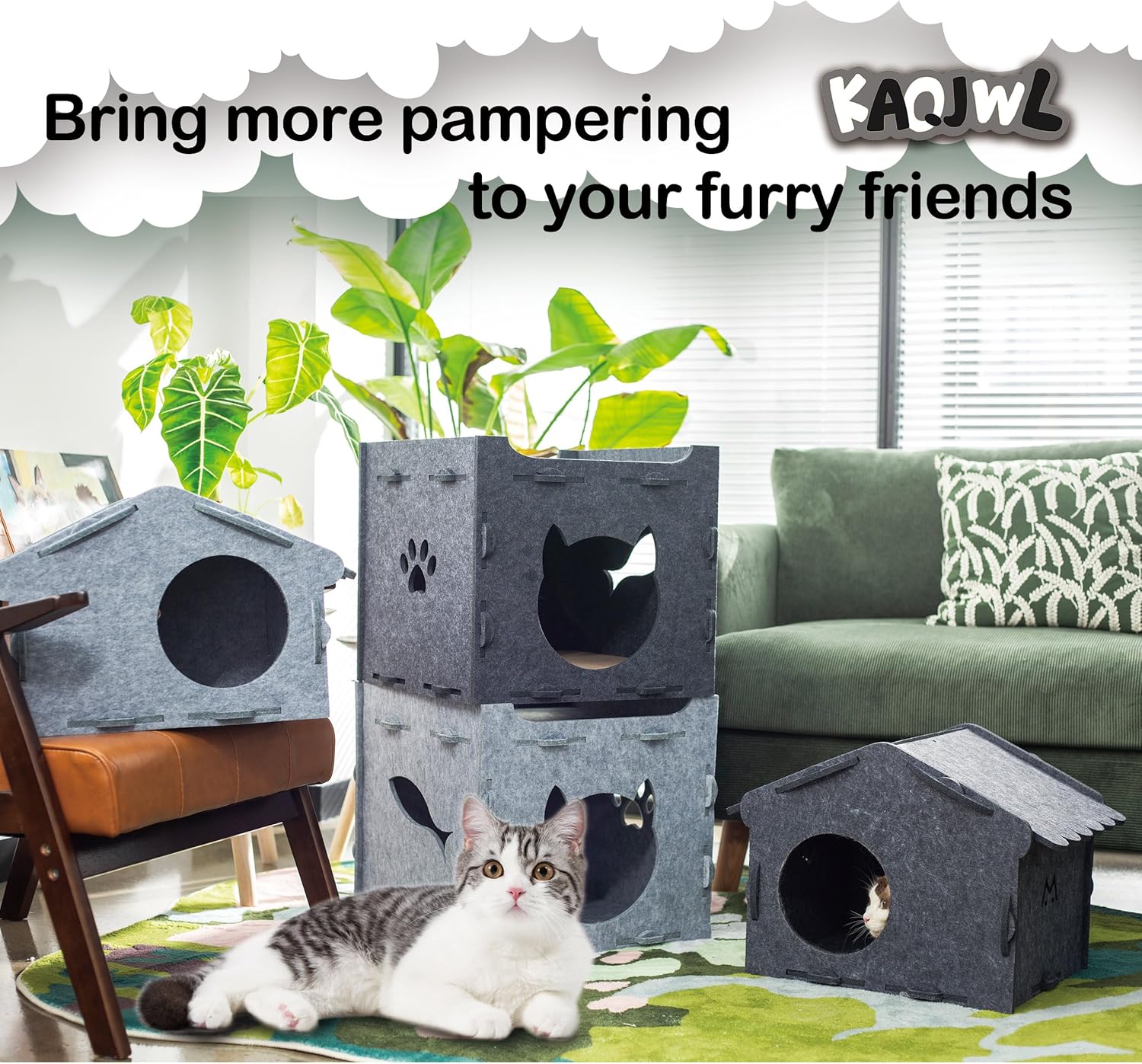 Multi color acoustic felt cat bed: As a professional acoustic panel cat bed, it’s made of high-quality felt that’s soft and skin-friendly. The cozy cat cave design provides security, while the acoustic feature reduces noise—ideal for indoor pets and perfect as pet supplies.