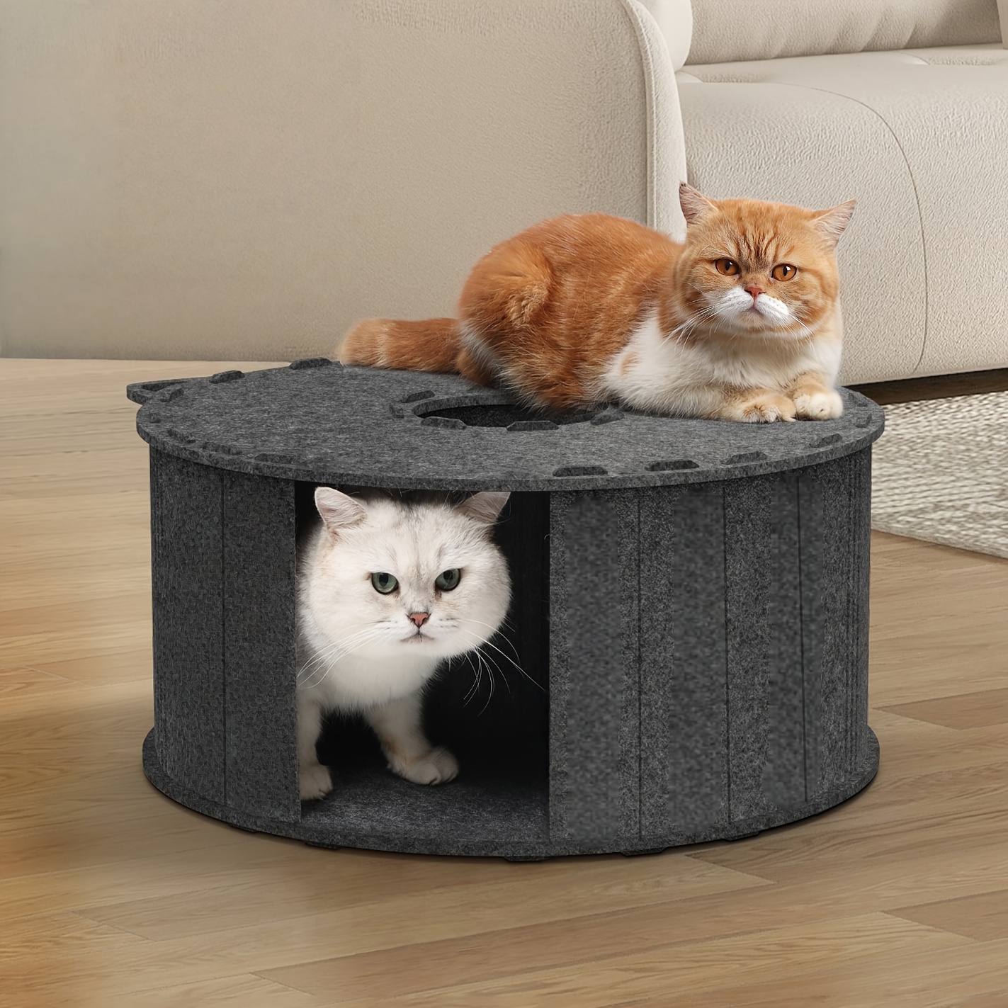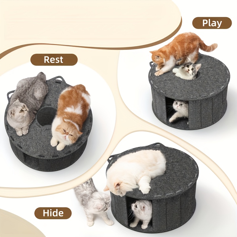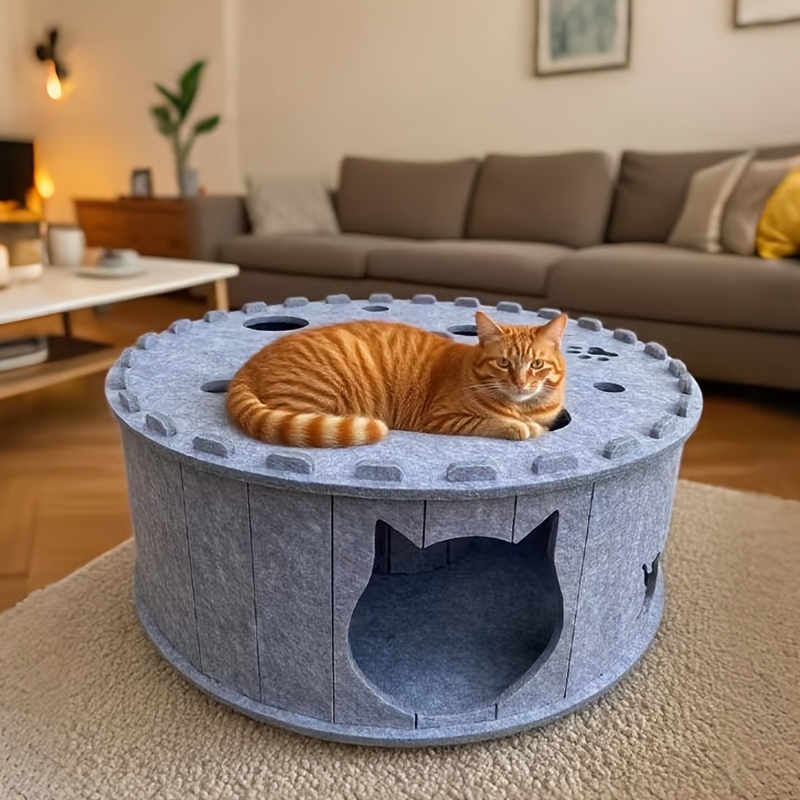 Eco-friendly acoustic felt panel cat cave: This felt cat bed is made of recycled material, featuring excellent sound absorption and durability. It’s warm, cozy, and designed to reduce pet anxiety, suitable for indoor cats and small dogs to relax in.