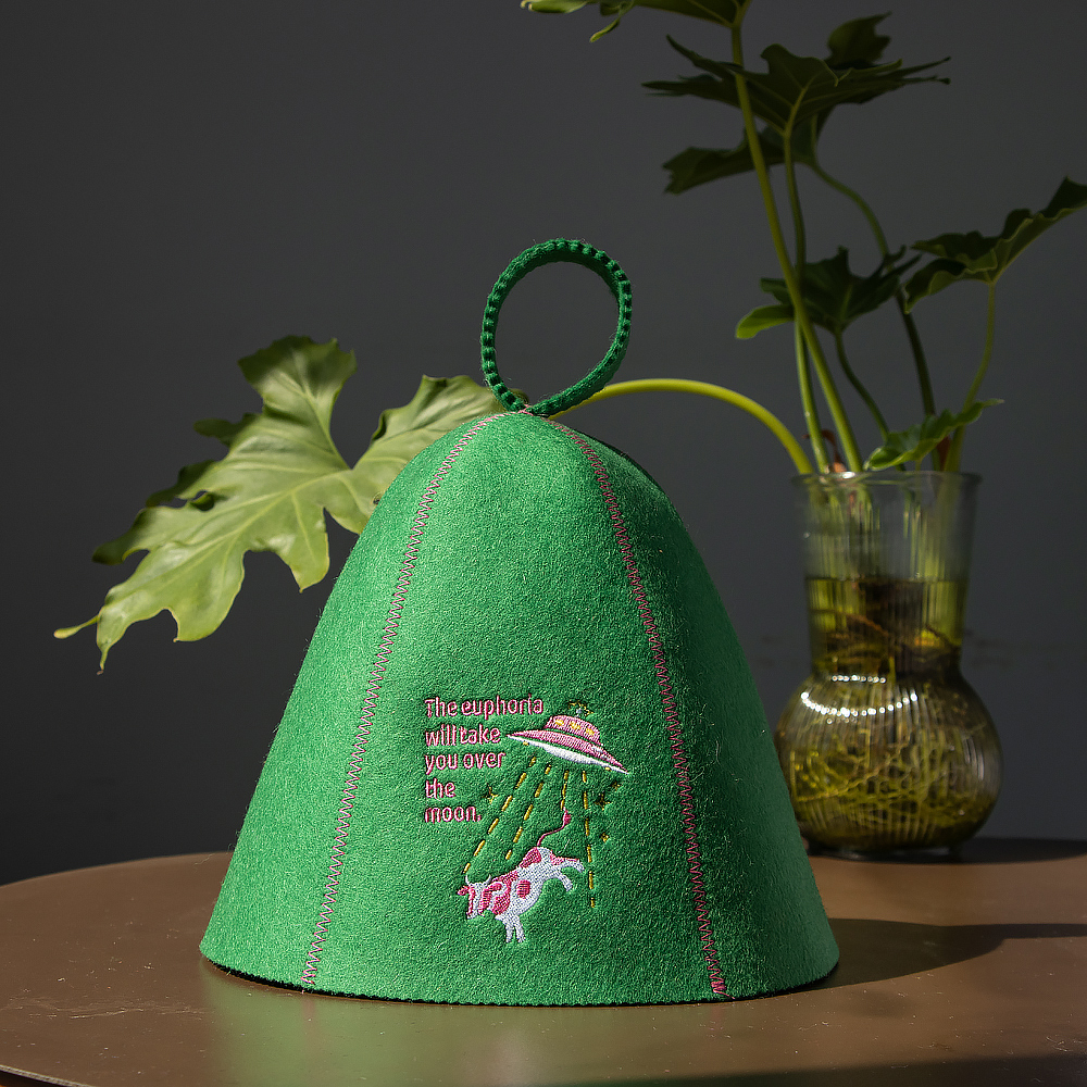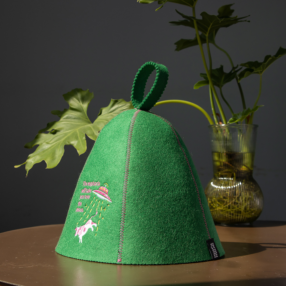 A:The air in the sauna room may be up to 90 degrees, but a wool felt hat will keep the air around your head at a comfortable temperature.Q:Can you do my own style and embroidery?