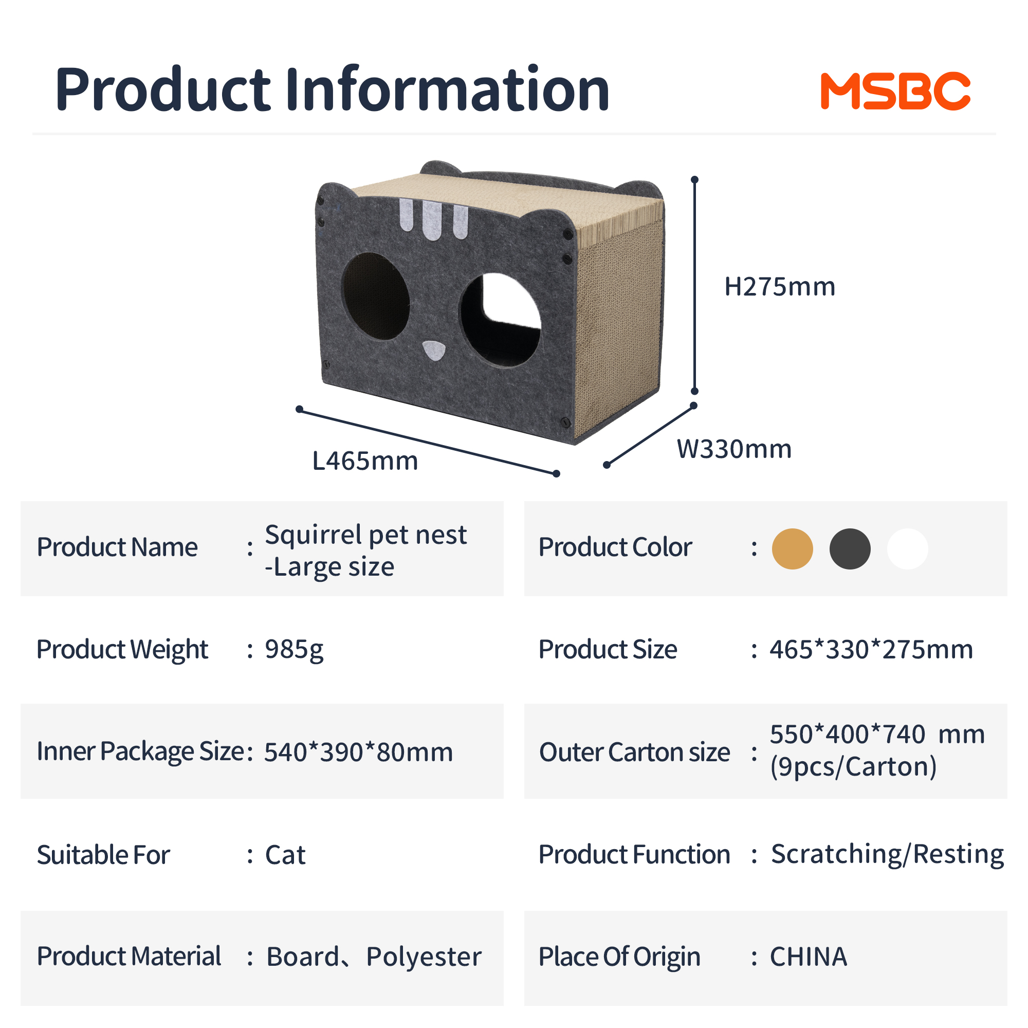 | Usage | Pet House/Cat Cave |