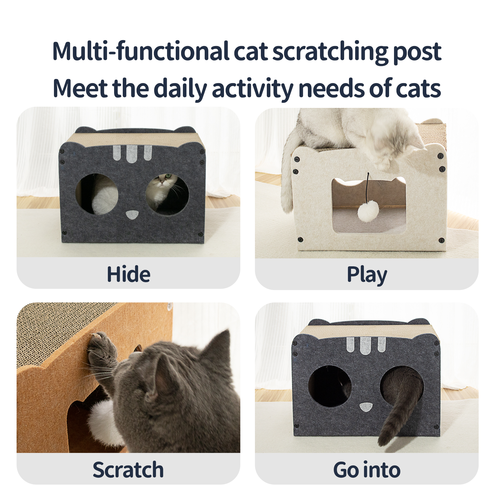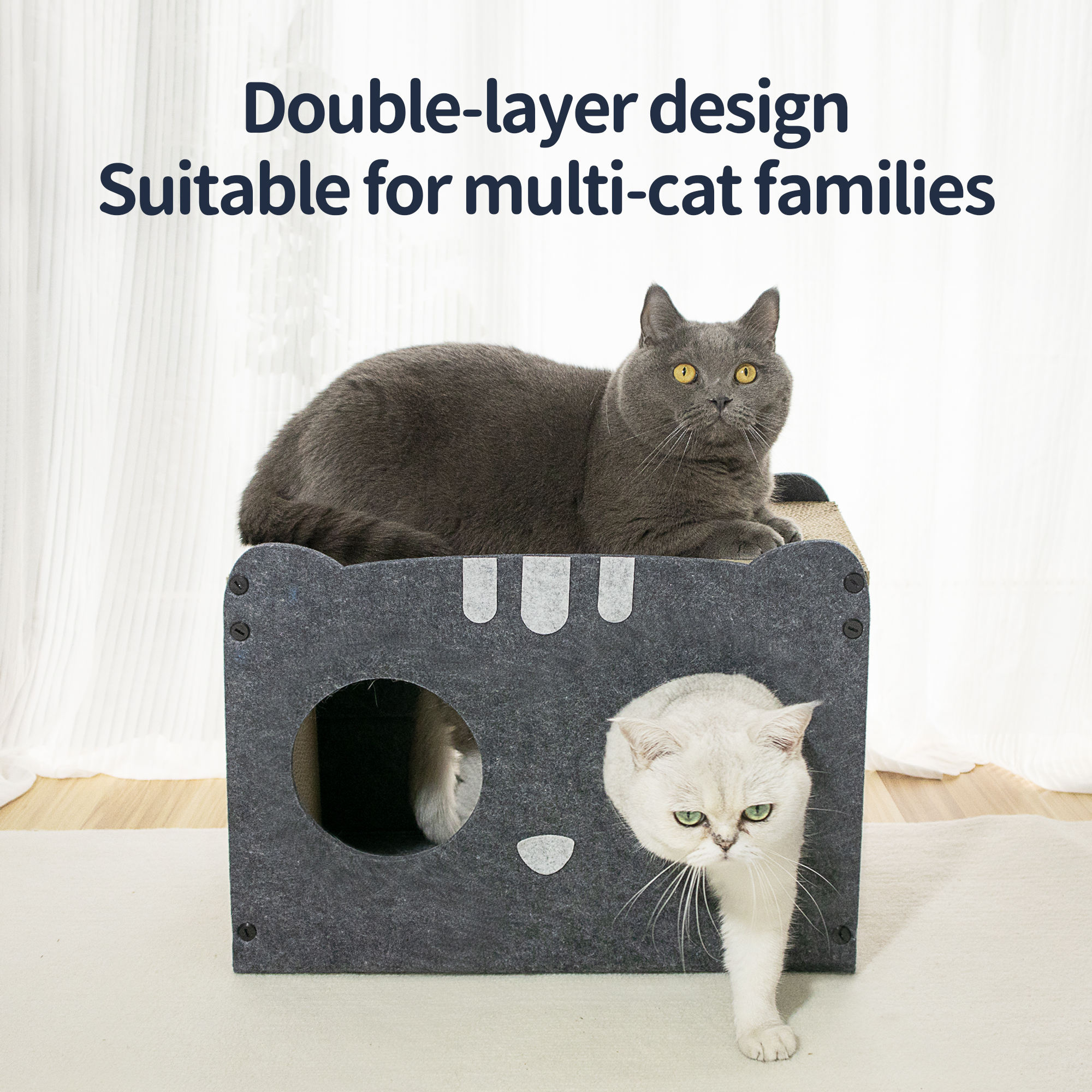 A14: Yes. The acoustic panel material is scratch-resistant. Additionally, the soft edges and enclosed design are naturally appealing to cats, encouraging them to enter and settle in the bed.