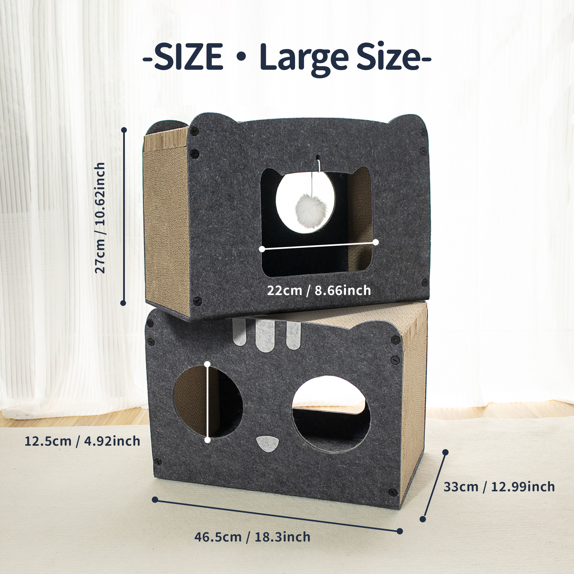 A1: Dimensions vary slightly by model, but the standard size is approximately 45 x 35 cm (approx. 17.7 x 13.8 inches). This size is spacious enough for an average adult cat to play and sleep comfortably.